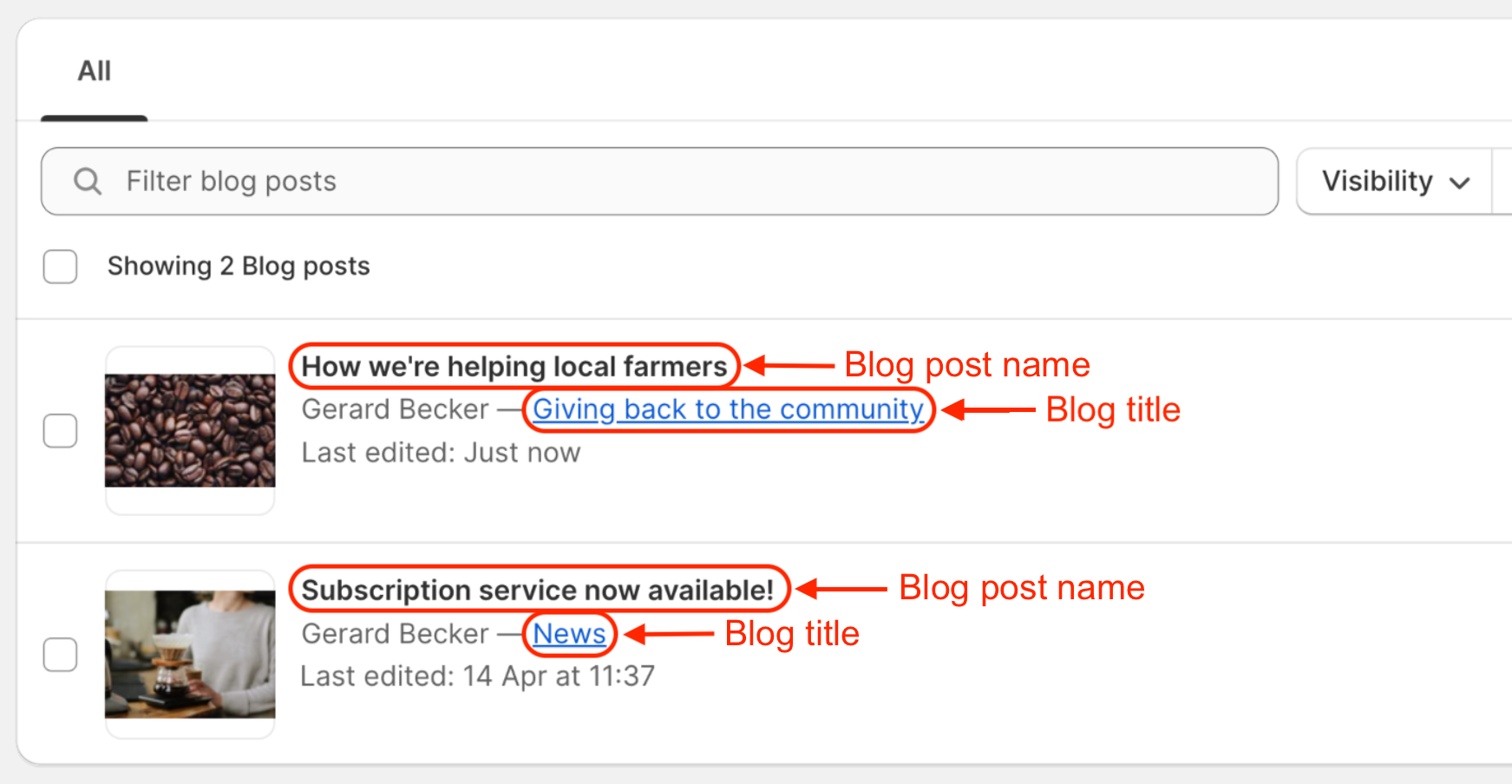 Step 1: Under Online Store in your Shopify admin, click Blog posts.