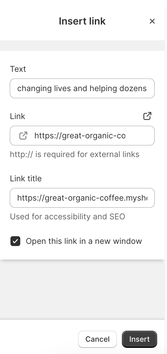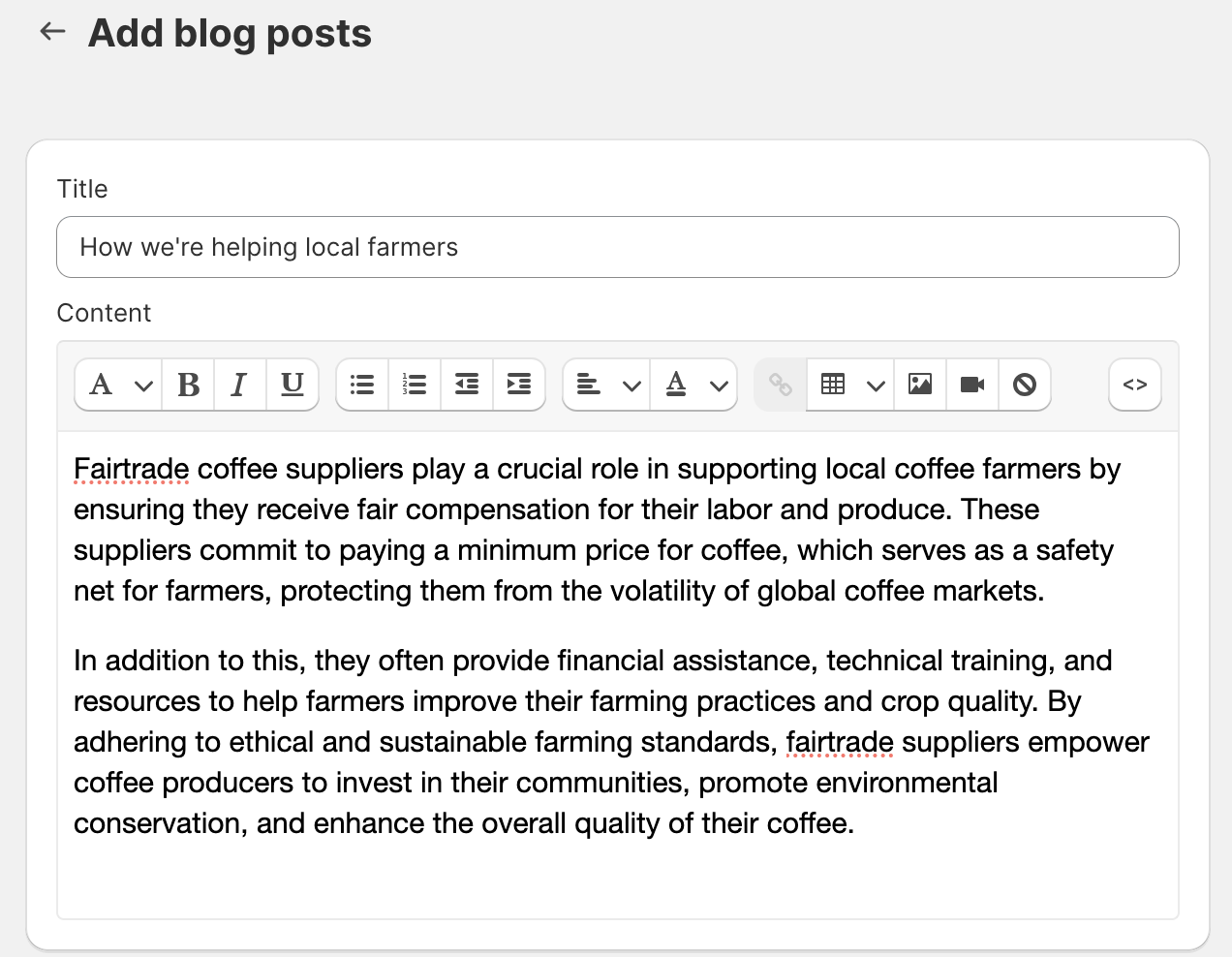 Tip: To learn more about formatting the text in your blog posts, click here to read Shopify's guide on using their Rich text editor.