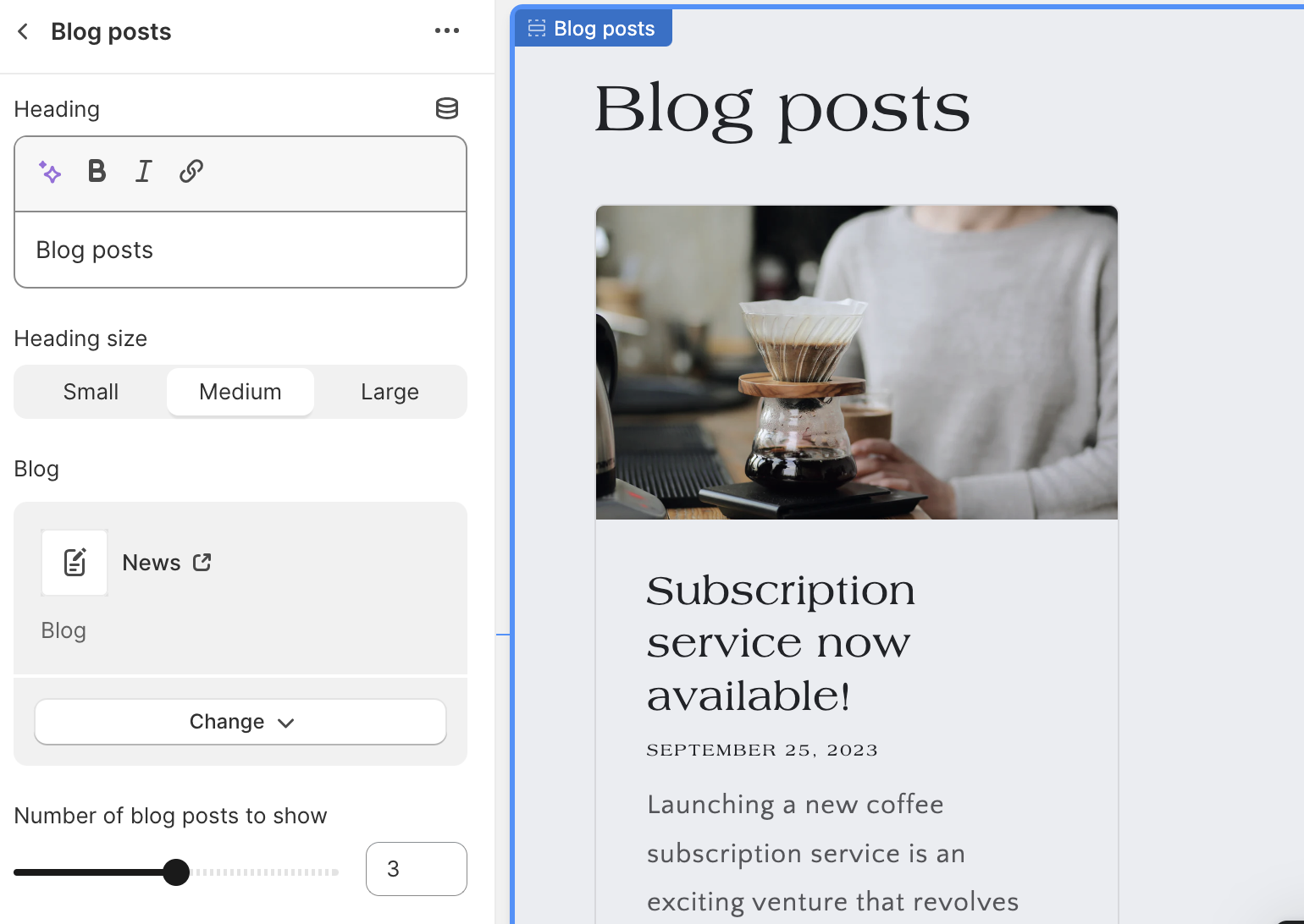 By using this section, you can choose a Blog and select the number of posts you want to display.