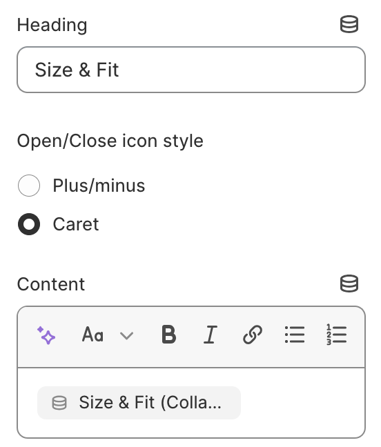 Finally, just connect the Collapsible tab block to the metafield using these steps: