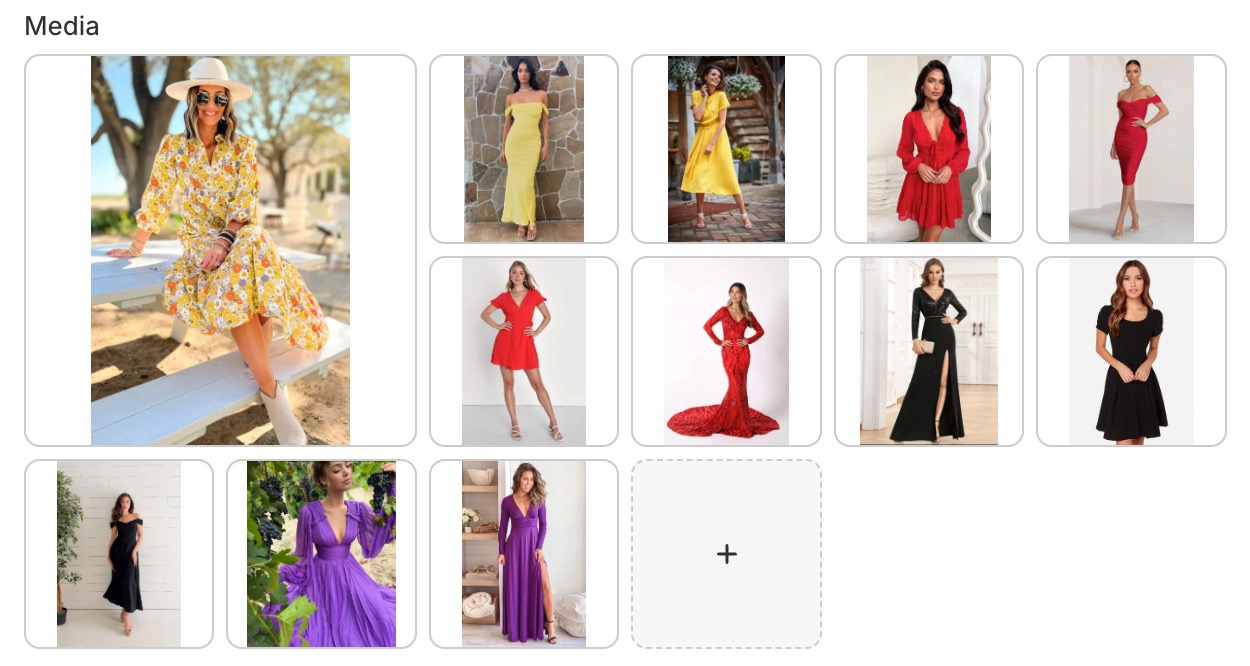 To make sure the “Only show media of the selected variant” setting works properly, you’ll need to organize and assign your product images in Shopify. Follow these steps: